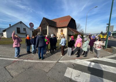 We left the primary school and saw the House of Music, the playground and the graveyard. The middle school, the priest’s house and the kindergarten were also on our route.